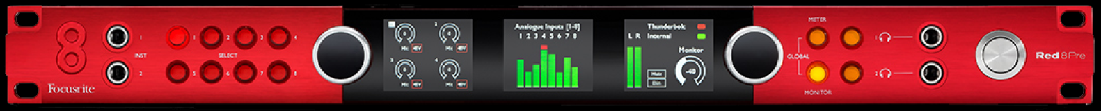 Red 8Pre includes the new Focusrite Control software, providing a straightforward and intuitive way to set up mixes and monitoring - and more! Control the mic pres – recall settings, assign stereo pairs, adjust gain and enable features such as highpass filtering and phantom power. Switch quickly between Pro Tools | HD and a Thunderbolt-connected DAW with the Host Mode setting. In addition, Red 8Pre is packaged with Softube's Time and Tone Bundle – a unique plug-in pack including four of Softube's professional quality plug-ins: Drawmer S73 Intelligent Master Processor, TSAR-1R Reverb, Tube Delay and Saturation Knob. Also in the box is the Focusrite Red Plug-in Suite, which accurately models Focusrite's classic Red range 2 and 3 equaliser and compressor hardware.